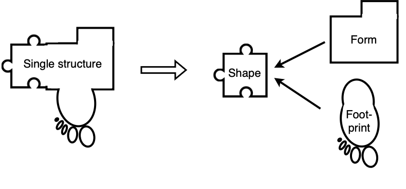 Three-part view, constisting of a form (for display), shape (for validation), and footprint (for reasoning) part
